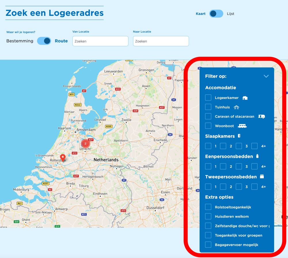 Je kunt natuurlijk ook Logeeradressen zoeken met behulp van het boekje en de routekaart.